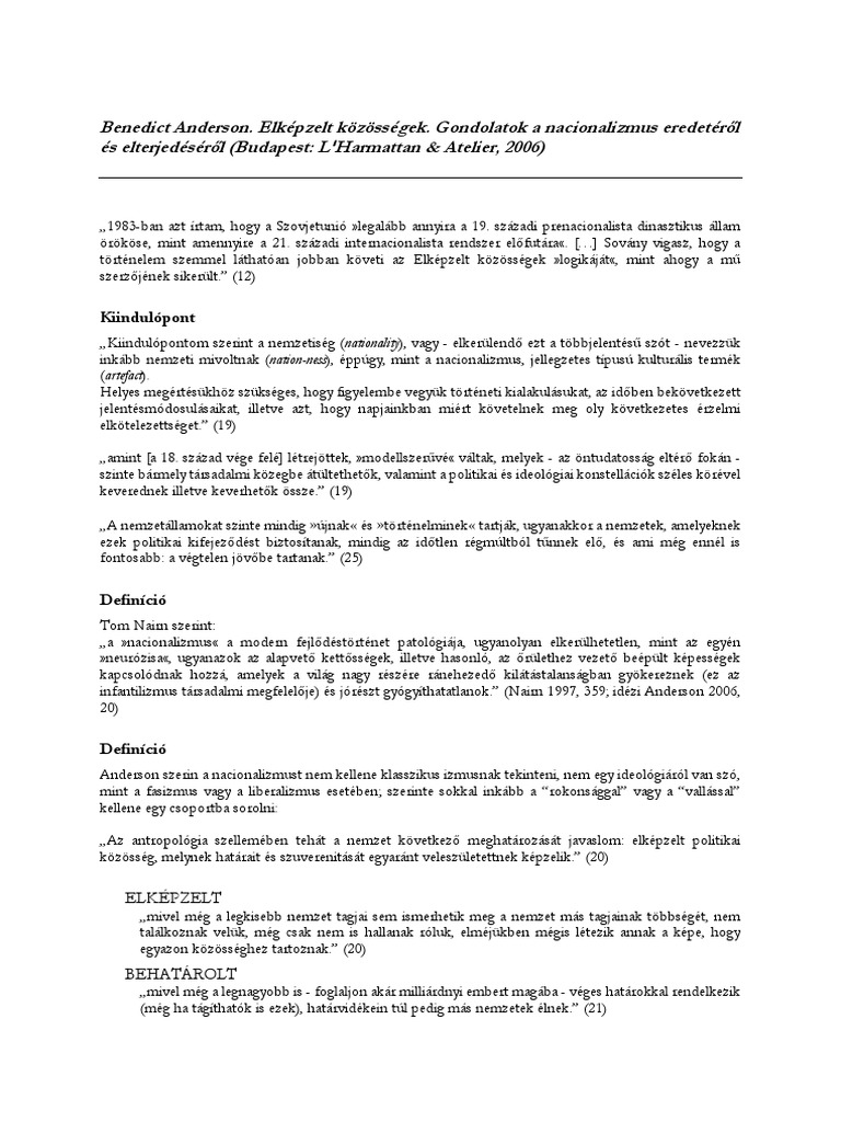 Elkepzelt Kozossegek Gondolatok A Nacionalizmus Eredeterol Es Elterjedeserol 2006