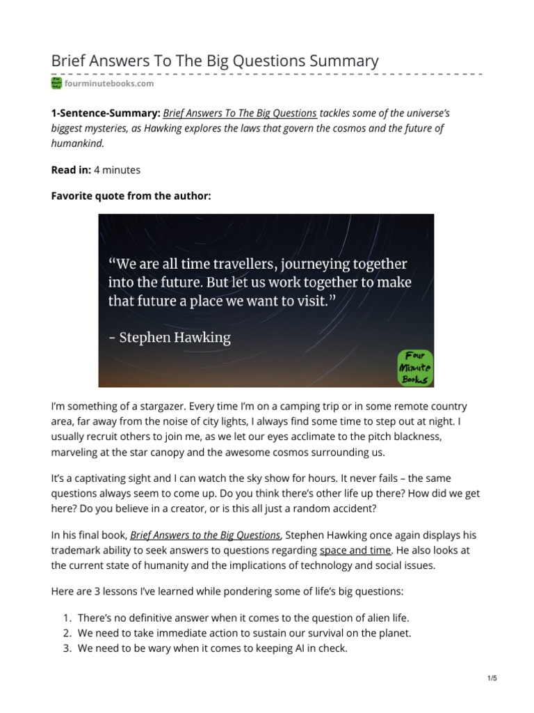 Brief Answers To The Big Questions Pdf Summary Stephen Hawking