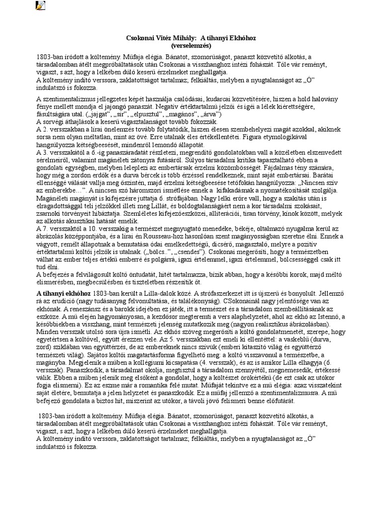 1803 1795 ben kizárják a a. Szállja ki szent hegyed közűl. Jellemző rá az erudíció nagy tudásanyag felvonultatása és találékonyság. A tihanyi ekhóhoz verselemzés közzétéve 2017 09 19 vica 2018 01 22.