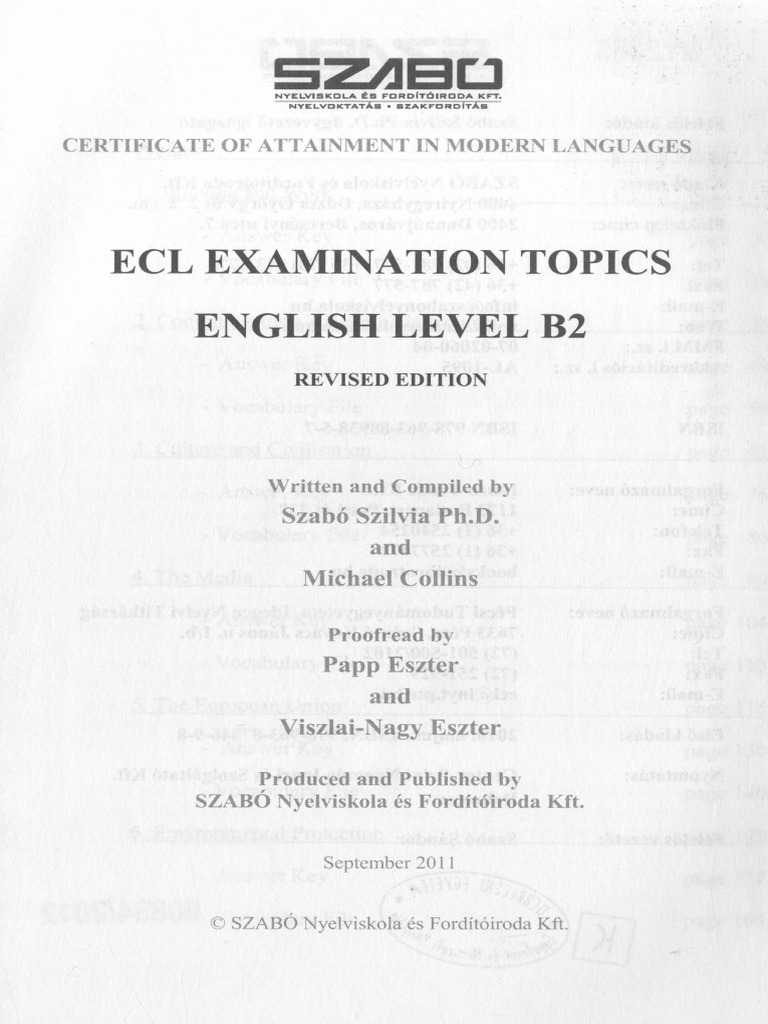 Ecl Examination Topics English Level B2 Revised Edition Ecl
