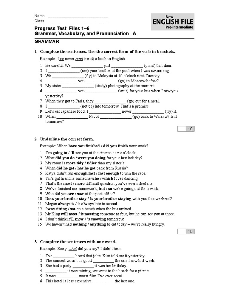 Name Class English File Progress Test Files 7 12 Vocabulary And Pronunciation A English File Grammar Vocabulary And Pronunciation Total 100 4 Leo On Very Well With