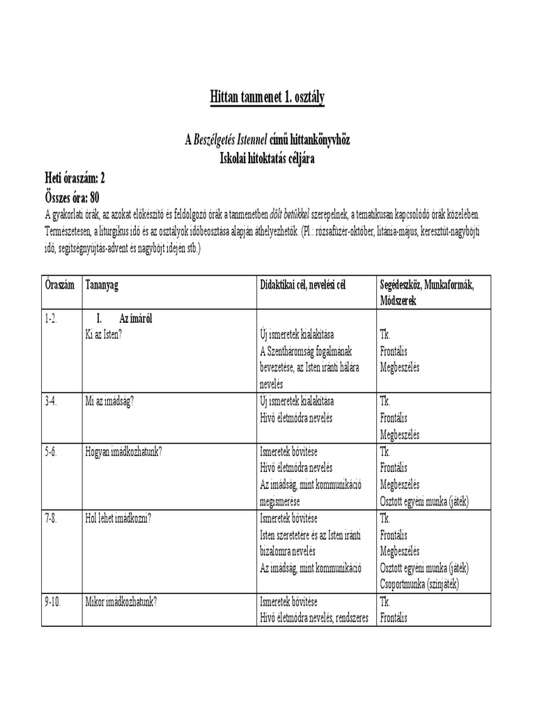 Hittan Tanmenet 1 Osztaly