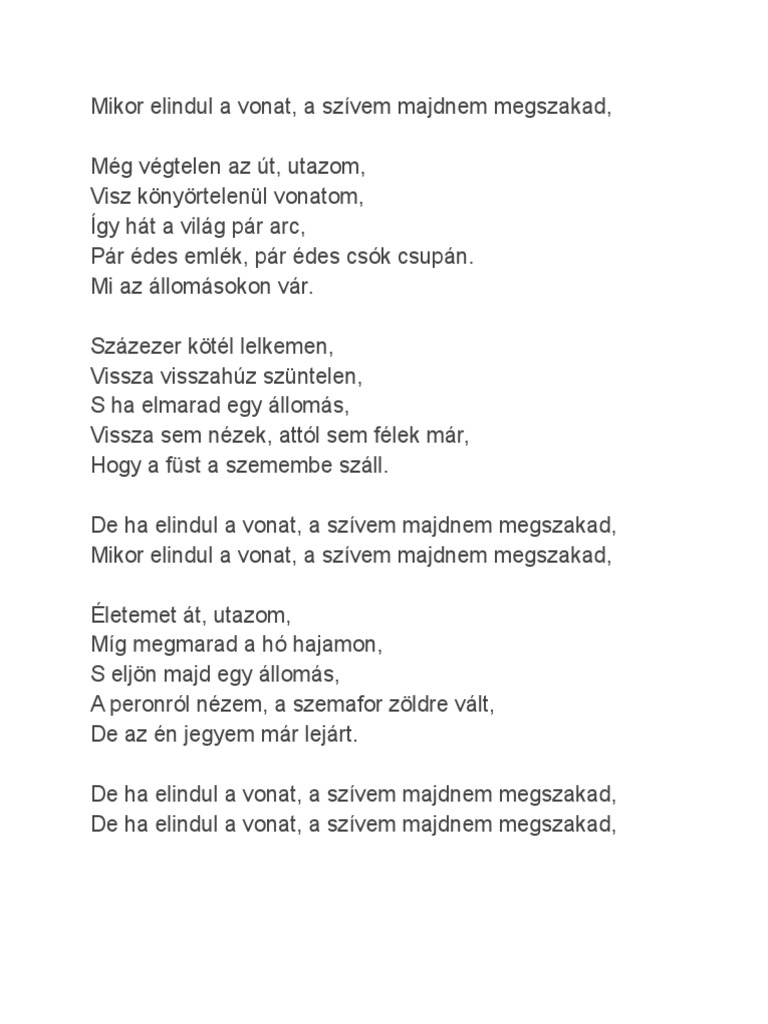 Dalszoveg Szuletik De Ha Elindul A Vonat Kep
