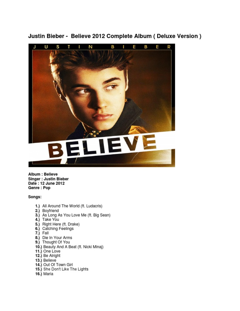 Justin Bieber Believe Complete Album Lyrics Directlyrics