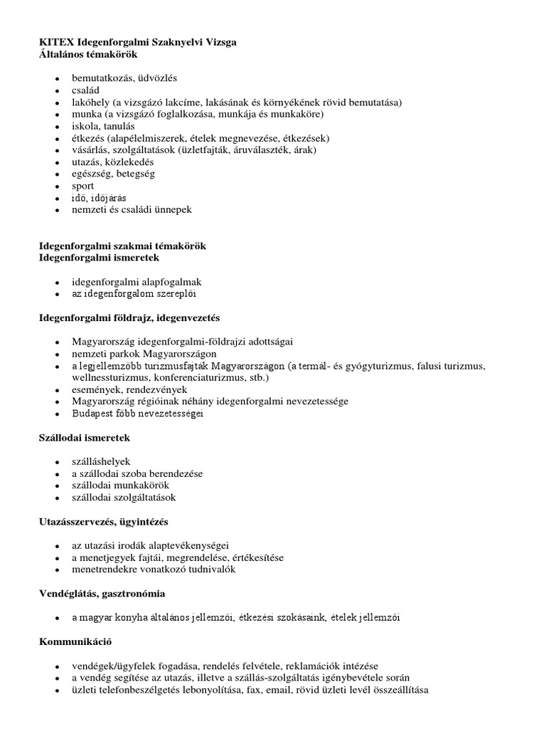 Kitex Idegenforgalmi Kereskedelmi Nyelvvizsga Pdf Ingyenes Letoltes
