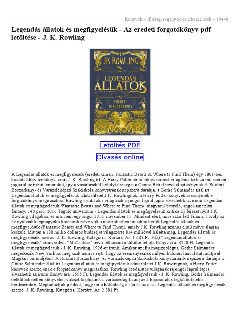 Legendas Allatok Es Megfigyelesuk Az Eredeti Forgatokonyv Pdf Letoltese J K Rowling