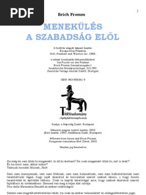 Erich Fromm Menekules A Szabadsag Elol