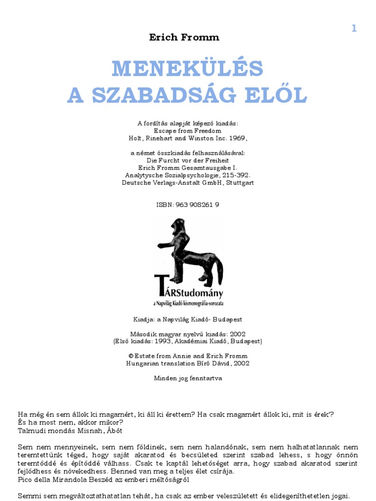 Konyv Menekules A Szabadsag Elol Erich Fromm