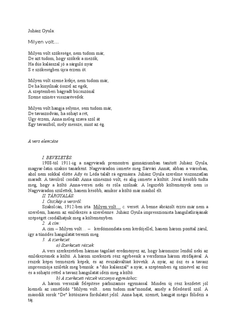 Juhasz Gyula Milyen Volt Cimu Koltemenyet Versek