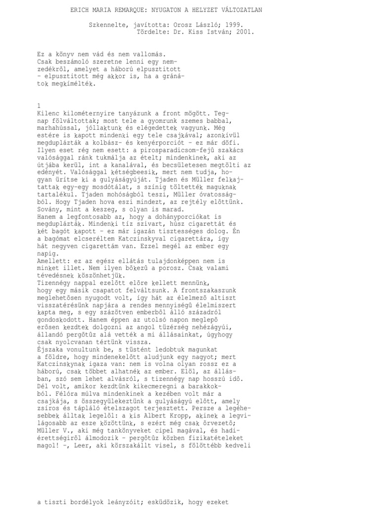 Magyar Nemzeti Digitalis Archivum Erich Maria Remarque Nyugaton A Helyzet Valtozatlan