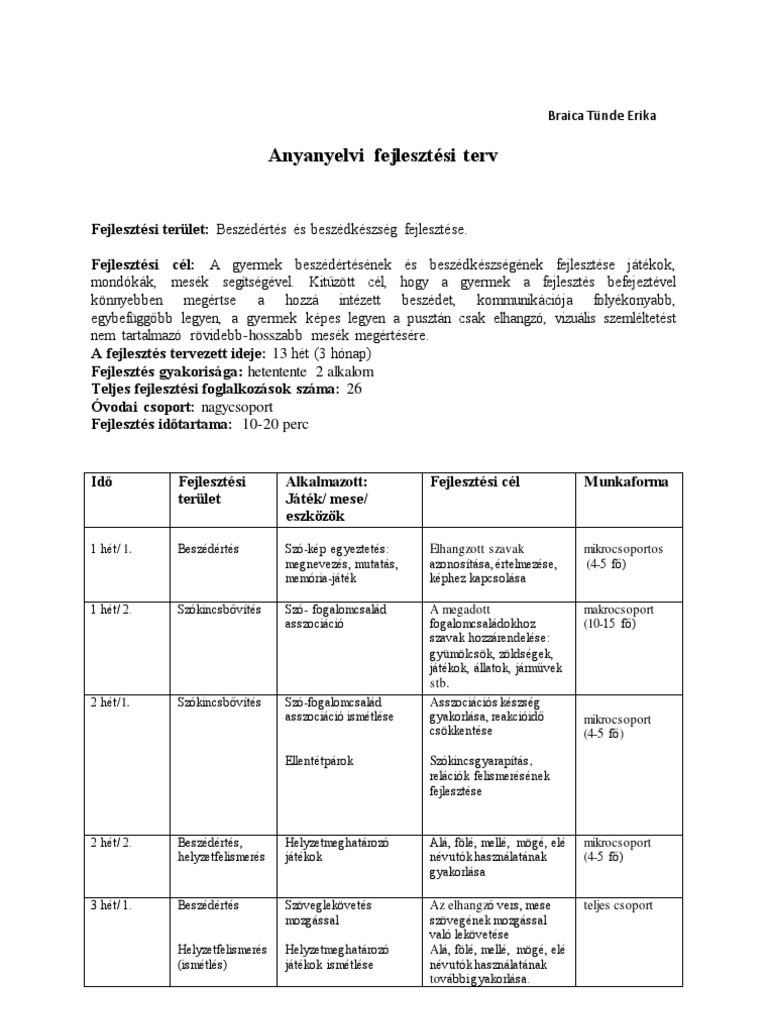 3 Honapos Anyanyelvi Fejlesztes Tervezet