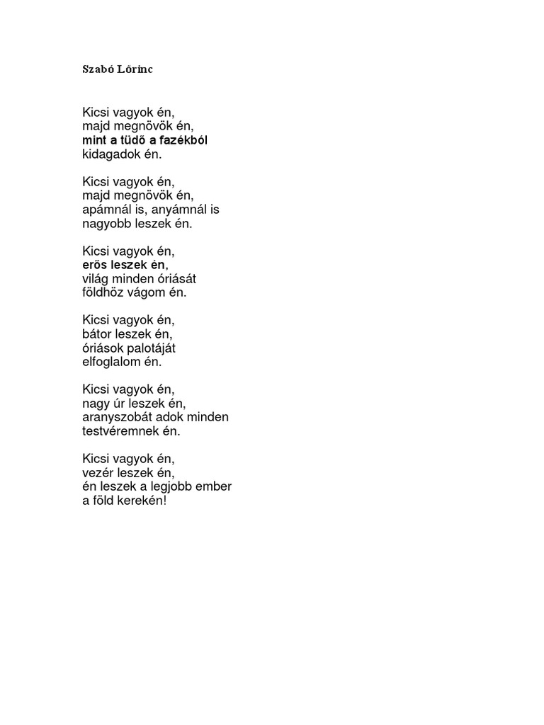 Szabo Lorinc Verse Kicsi Vagyok En