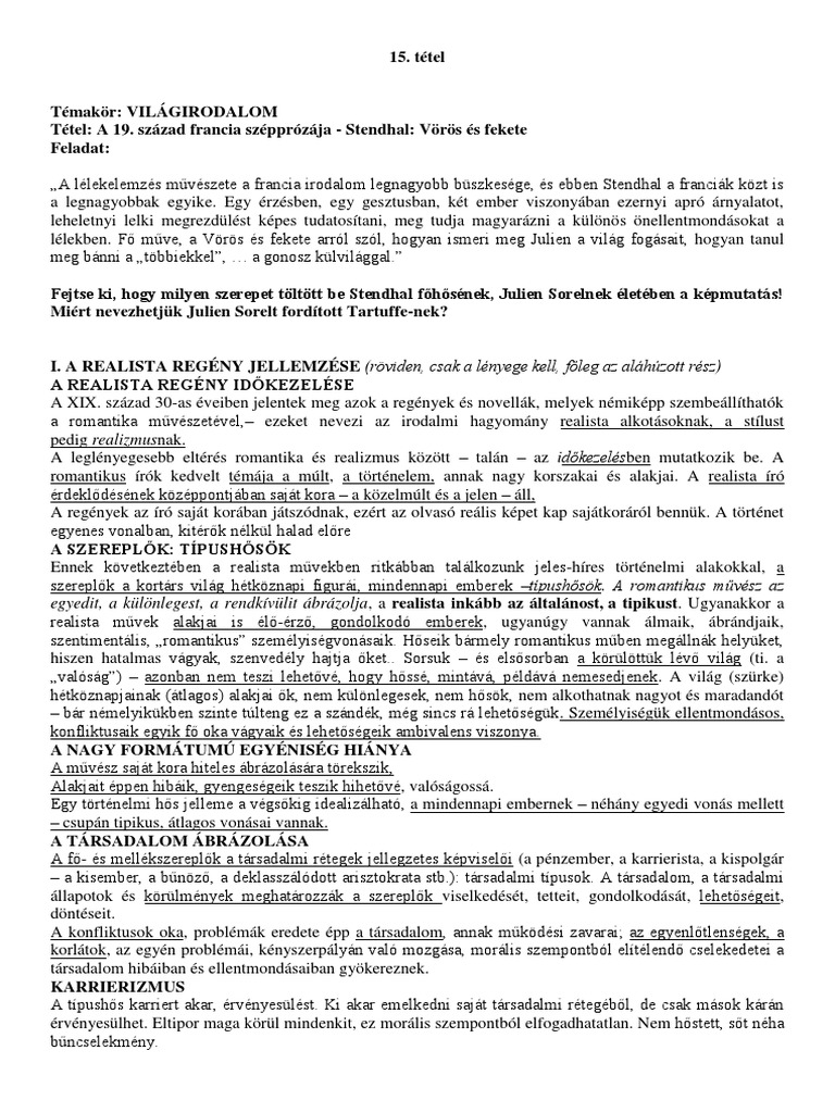 6 Tetel Stendhal Voros Es Fekete Magyar Tetelek